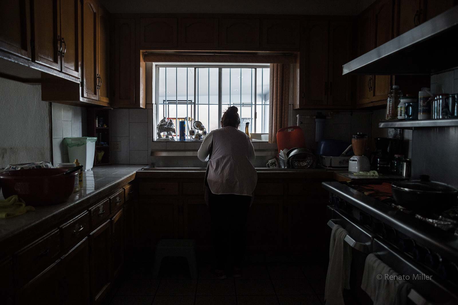 María, 56 años, guatemalteca. Mientras espera el resultado de su aplicación de asilo, trabaja como cocinera en la organización que inicialmente la acogió durante un año. Este trabajo le permite rentar un departamento junto con su familia y sobrellevar la carga de la espera.