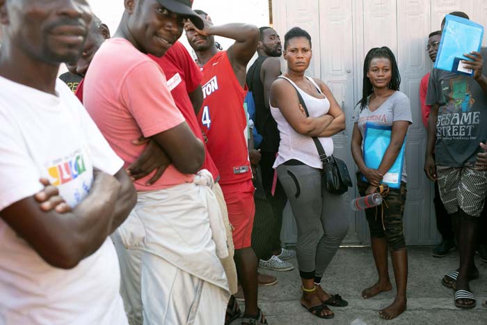 Personas procedentes de Haití esperan a regularizarse en la estación migratoria de Tapachula, muchos vienen de Chile y Brasil. Fotografía: Encarni Pindado